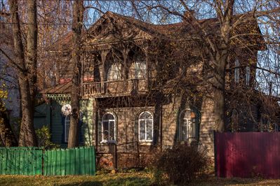 А практически напротив от церкви пытается сопротивляться времени другое архитектурное наследие города — дом Говорова, постройки конца XIX века. Правда, в отличие от храма удаётся ему это не так хорошо: удовлетворительным состояние ещё можно назвать, но уже с натяжкой. Хотя, по всем признакам ещё жилой: