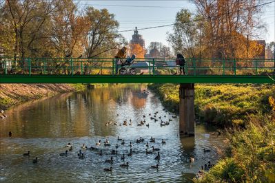 Рядом — очень живописный мост (в том плане, что открываются от него удивительной красоты городские пейзажи), под которым плавают целые стаи уток. Место, похоже, давным-давно прикормлено: