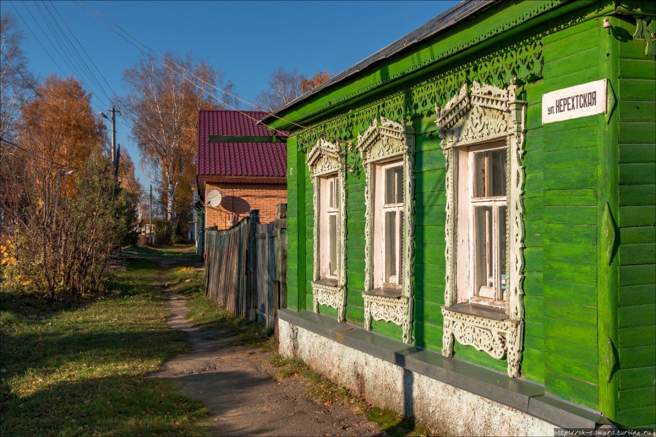 Проходим тихие полудеревенские улочки с деревянной застройкой и резными наличниками на окнах. Кажется странным, но зачастую местные (не только Нерехты, но и любых других древних городов центральной России) этой красоты практически не замечают и не понимают. И очень удивляются, когда видят, что их дома фотографируют. Иногда даже подходят, спрашивают чем он так необычен: