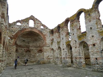 Раньше город был фракийской крепостью. Было такое Фракийское царство в древнем мире, пока не приказало долго жить, как и все древние царства. Так вот Несебр входил в то царство и назывался Месембрия. Потом город стал греческой колонией. Колонией не в смысле, что он был зависимым, его эксплуатировали. а потом корабли с золотом отправлялись в Грецию, а в смысле, что город был расположен вдалеке от основных греческих городов. Потом колония стала римским городом. После Римской империи пришла Византийская империя. За долгие годы тут, как в Иерусалиме, один культурный слой над другим, были сооружены оборонительные сооружения, остатки которых и являются символическими воротами в старый город.
