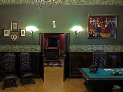Сперва попадаем в покои-кабинет (не знаю, что больше, покои,или кабинет, но настоящие покои находятся этажом выше)