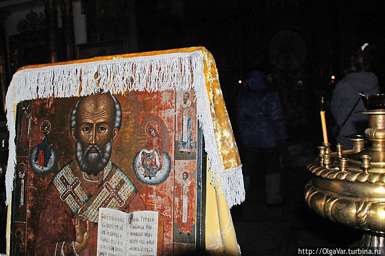 Не только снаружи поразил всех храм. Не меньше восхищало и поражало его внутреннее убранство. Прежде всего, деревянный позолоченный иконостас с резьбой и необычной центральной округлой частью с Царскими вратами, выступающей немного вперед. Из-за этих округлостей главные иконы церкви – Богородицы и Христа с центра совсем не видны.