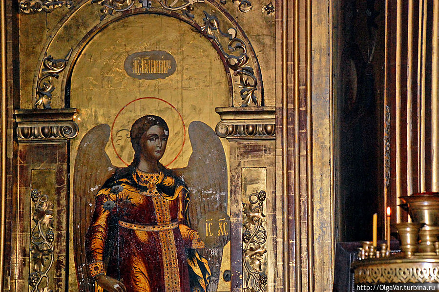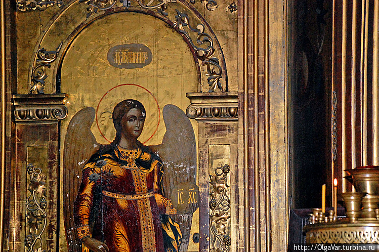 Оттого первыми бросаются в глаза фигуры архангелов, выполненные, как и все иконы храма, в стиле невьянской иконописи: Михаил — в золотых доспехах и с огненным мечом в руке, с одной стороны, и Гавриил с ветвью роз, — с другой. Удивительно, но храм в советские годы разорён не был, поэтому иконостас мы видим таким, каким он был в год его освящения -1797.