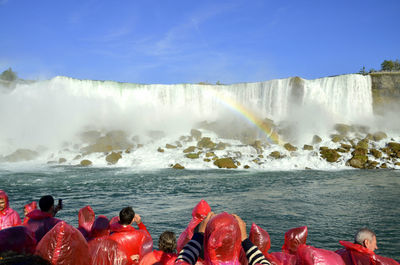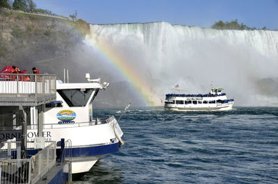 Сначала проплываем мимо Американского каскада и Фаты невесты. А радуга плывет вместе с нами!