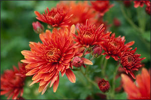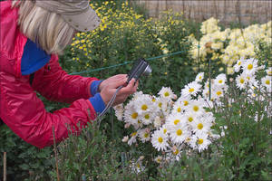 Хризантемы многолики, чарующи, благородны - восхитительны! Мы кружили вокруг распустившихся цветов, снимая сначала через один объектив, затем с другим. Потом захотелось выхватить отдельные цветы из массы "портретно". Уже собрались уходить, но вспомнили, что забыли про видео - пошли на пятый круг. За это время меня, ползающего на коленях около цветов, даже сняли для местного телевидения. Уводили меня от гигантской клумбы почти насильно - моим попутчицам хотелось посмотреть и остальные растения парка, в том числе и участниц угасающего бала роз.