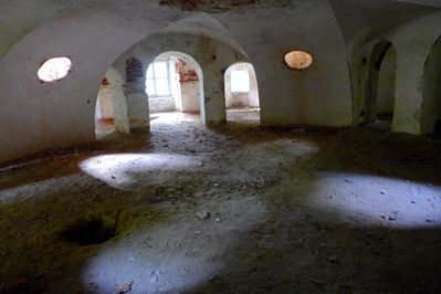 Мы смогли пробраться на нижний этаж храма. Он был открыт. Порадовались тому, как архитектурно безупречно был оформлен этот казалось бы никому не нужный подвал.