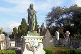 Многие склепы окружены колоннами, а надгробия украшены символичными памятниками и скульптурам, амфорами или открытой книгой.