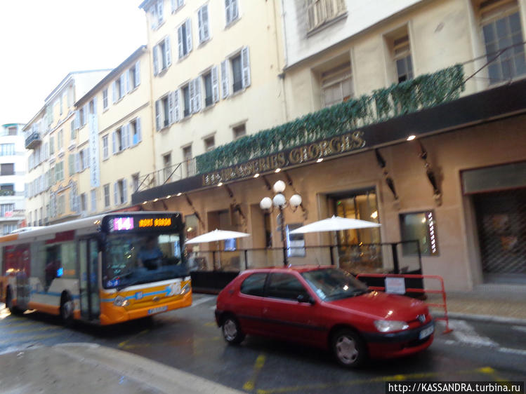 Теплый дождь — не повод для праздного отдыха и ожидания "у моря погоды". Бодрым шагом мы направились на автобусную остановку.Найти подходящий автобус в Ницце не простая задача. Главное-определиться с номером маршрута и найти ближайшую остановку. В этом нам, я считаю, повезло, благодаря удобному расположению нашего отеля. Автобусные остановки были недалеко, в холле отеля можно было выбрать нужный листок-рекламу с маршрутом автобуса, перечислением всех остановок и времени в пути.
