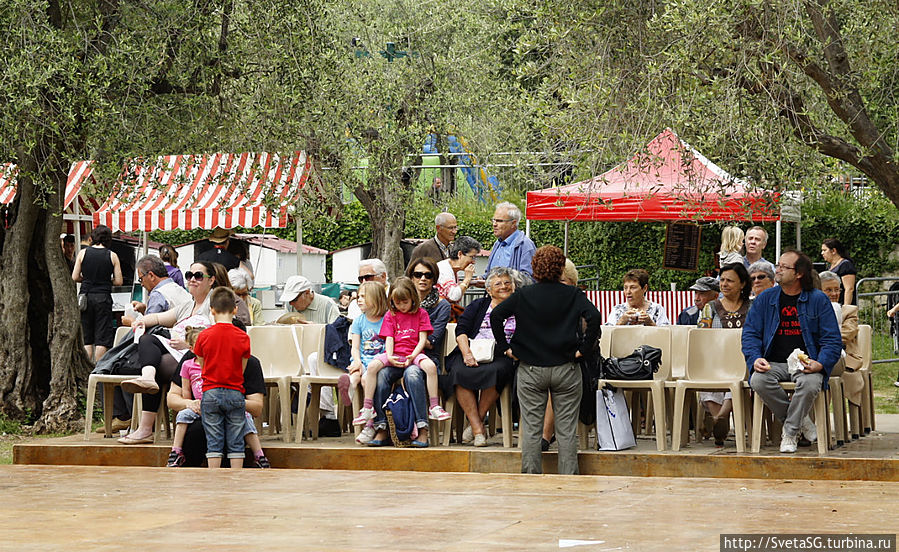 Очень интересно наблюдать за зрителями — кто занимается рукоделием, кто беседует, кто кушает. Забавно звучит со сцены пожелание от музыкантов зрителям "бон аппетит"