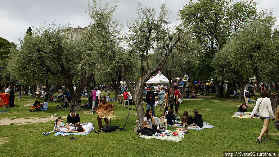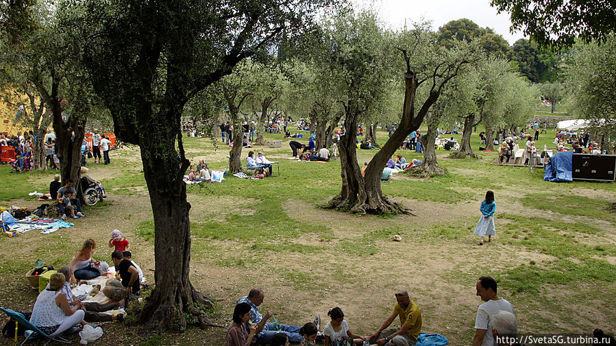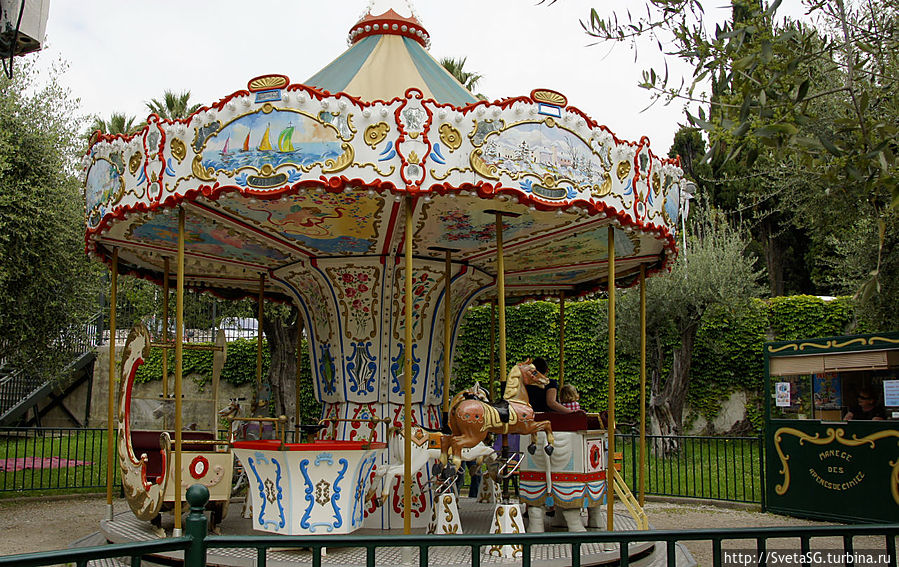 В последний день своего пребывания на Лазурном берегу мы решили просто отдохнуть и никуда не спешить. Это было воскресенье, наш самолет в Москву улетал только в 20.00, так что практически полный день был в нашем распоряжении. И провести его мы решили в парке, среди местных жителей. На автобусе поднялись на холм и пошли в парк. В самом начале парка карусель.