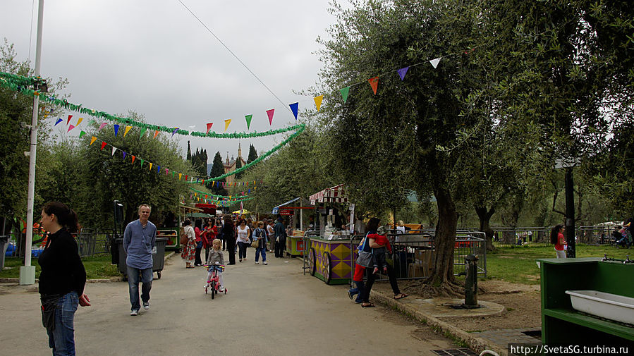 Вдоль аллеи прилавки со всякими вкусностями. Справа попали в кадр краники с питьевой водой, здесь же и руки помыть можно