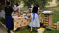 в печках на огне пекут какие-то лепешки. К сожалению, мы не знаем что это за угощенье