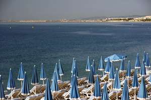 бесцельному блужданию по местной набережной.. Променад в Ницце тянется на несколько километров побережья и украшен стройными рядами пляжных зонтиков.. Эти зонтики