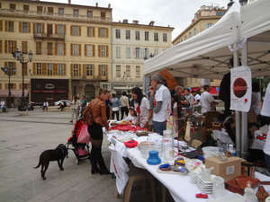 Эти японские сувениры собрали, а теперь продавали добровольцы под лозунгом "Ницца помогает Японии". В рамках этой благотворительной акции можно было купить такие же футболки, что были на участниках.