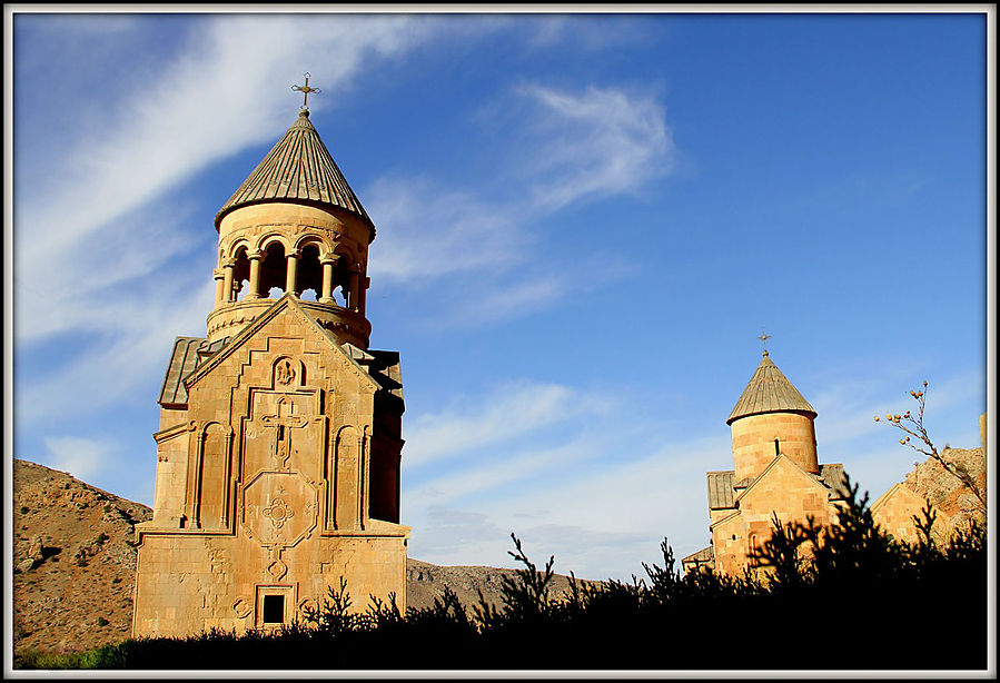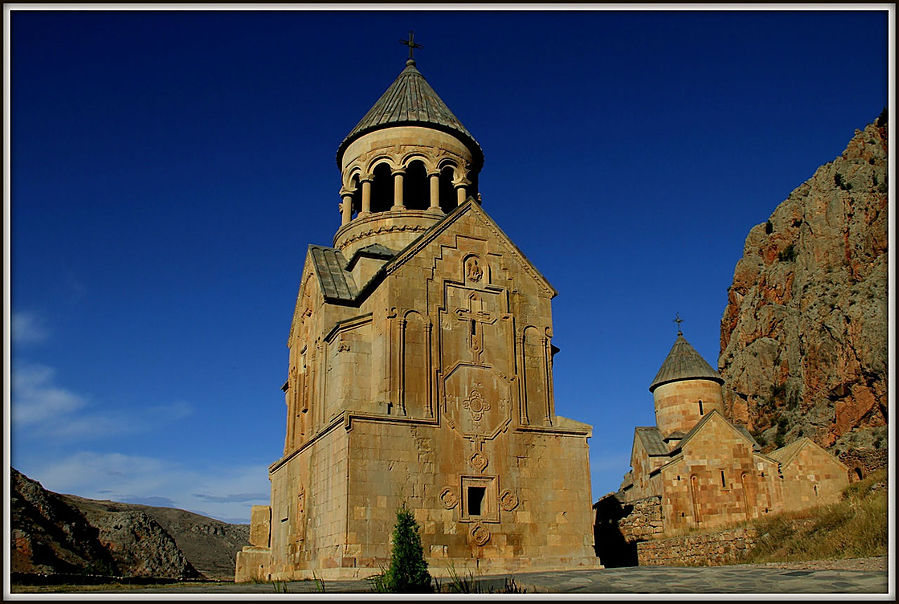 Это место интересно и своей древней историей и окружающей природной красотой. Нораванк находится на возвышенности на фоне красных скал, что добавляет ему внешней притягательности.