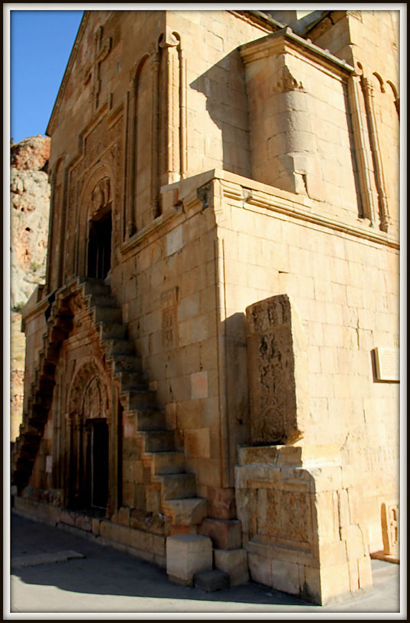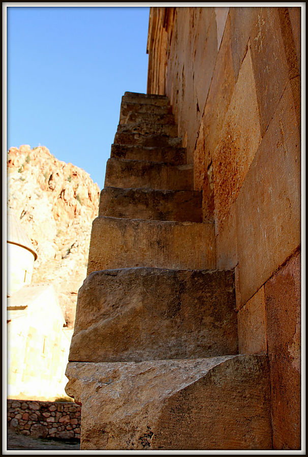 Мне запомнилась лестница на фасаде церкви Сурб Аствацацин. По ней опасно подниматься и еще тяжелее спускаться, особенно тем, у кого кружится голова.