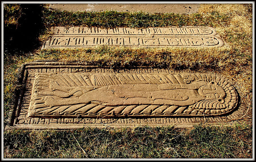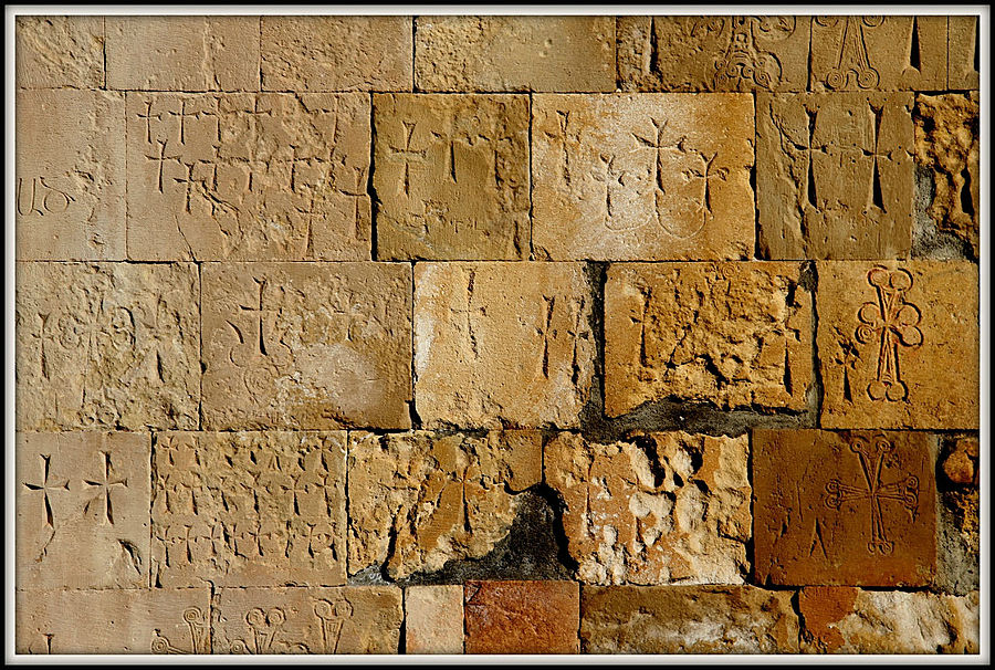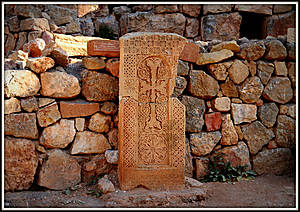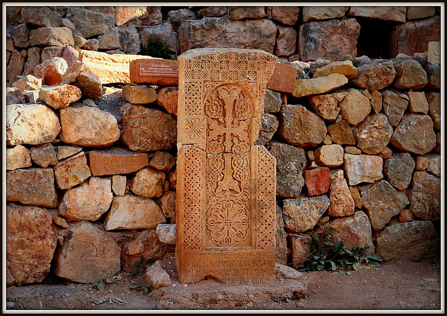 В комплексе сохранилось несколько хачкаров. Самый замысловатый из всех выполнен Момиком в 1308 году. Большой крест над щитообразной розеткой и выпуклые восьмиконечные звезды, вертикально расположенные по бокам, выполнены на фоне ажурной резьбы. В верхней части хачкара – изображение Деисуса в обрамлении пяти арок, символизирующих крытую аллею из вьющихся растений, на что указывает фоновый орнамент из цветов, фруктов и листьев виноградной лозы.
