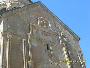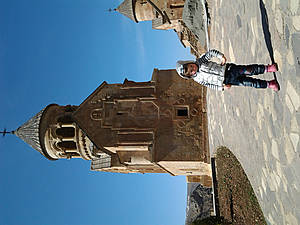 Интересно, что внизу, в двух метрах от лестницы сидел местный священник. Он видел и как я забираюсь, и как спускаюсь — и не сказал ни слова. И не было в его взгляде ни одобрения, ни осуждения. Мне почему-то стало стыдно, неловко. Я как будто ждала от него беспокойства или совета, а он невообразимо спокойно и безмятежно сидел и наблюдал за моей попыткой попасть на небеса. Наверно, это и есть внутренняя гармония, nil mirari. Никакого беспокойства не вызвал у него и гид, который, мягко говоря, порол отсебятину о хачкарах Момика.