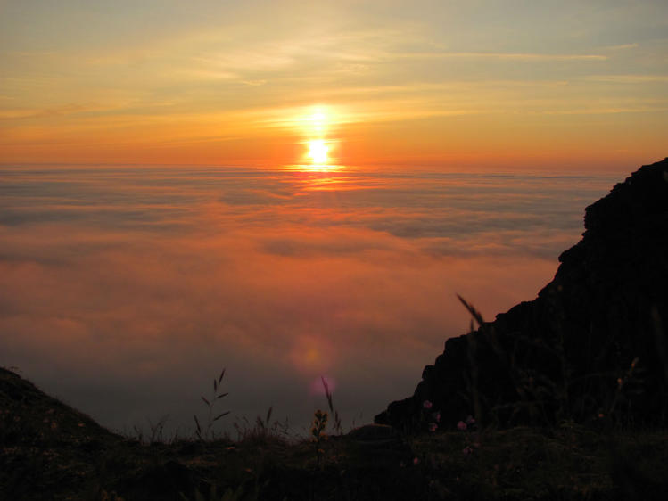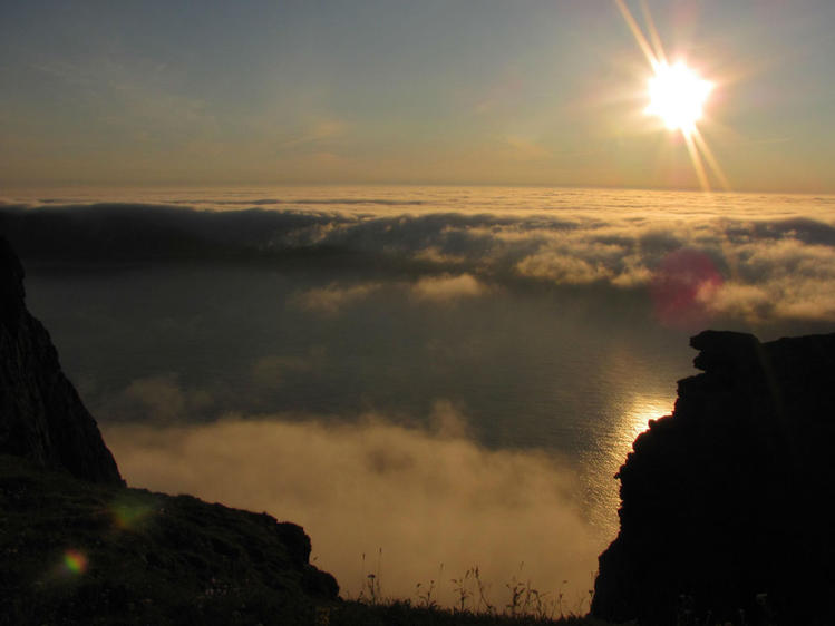 Здесь +13С, небо ясное и ветерок. Облачно там, внизу, откуда изредка поблёскивает морская вода.