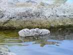 В одной сидел большой пушистый серый птенец. а чуть поодаль еще два. Это была отличная ложбинка, защищенная от ветра, настоящая квартира с удобствами: и водоем для отработки техники плавания, и место для прогулок, и более закрытое углубление на случай непогоды. Стоя на высоких лапках, птенцы достигали тридцати сантиметров. Не желая их сильно беспокоить, я все же не могла от них оторваться, улеглась на камни в паре метрах и принялась за съемку. Они тоже с интересом рассматривали меня, вытянув шейки, но близко не подходили, и принялись плавать по своей лужице взад-вперед.