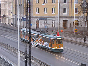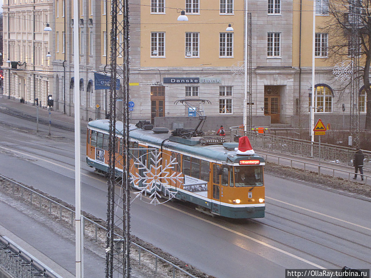 А утром из окна увидели трамвай. Умилила шапка Санты — вот что значит праздник в городе!