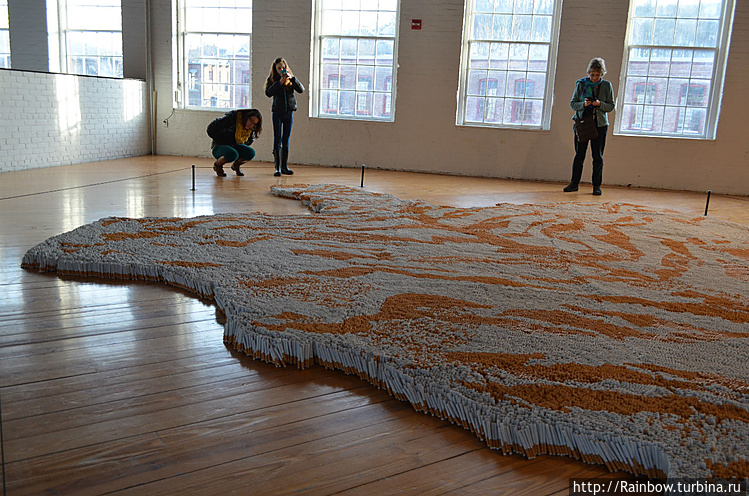Вы подумали, что какой-то ковёр? В принципе, да. А догадайтесь из чего он сделан? Немножко нестандартно, ведь в этом музее используются нестандартные материалы. Не знаете? Тогда присмотритесь повнимательнее.