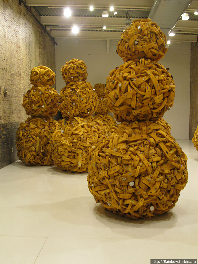 Кроме фотографий сегодняшних, у меня сохранились и несколько фотографий прошлогодних выставок. Все они дают представления о масштабах выставочных залов и выставленных там работ, о направлениях в современном искусстве, об используемых совершенно нетрадиционных технологиях. Смотрите сами.
