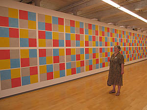 На третьем этаже располагается постоянная выставка, которая мне очень нравится. Для меня это — игра цвета, геометрии и оптических эффектов в большом пространстве.
