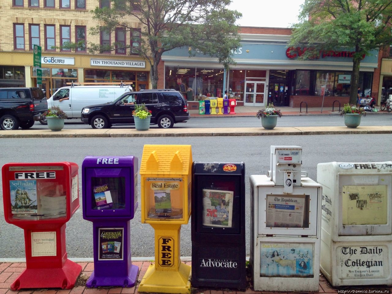 Мы прошли мимо кажущихся ужасно старомодными и далеко несовременными диспенсерами газет. Скоро уже и бумажные газеты исчезнут как понятие, все перейдут на электронные газеты, а ящики будут стоять и стоять...