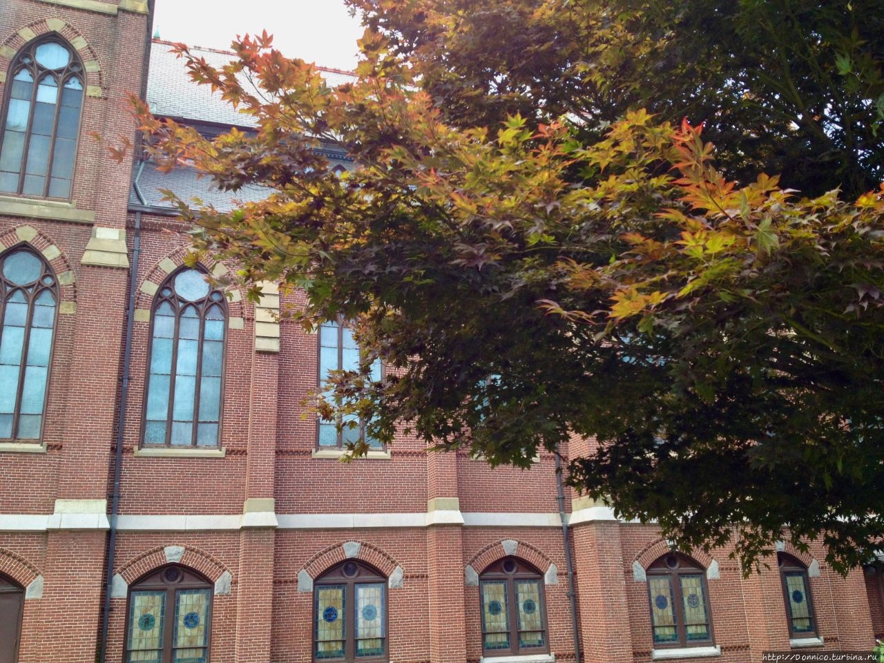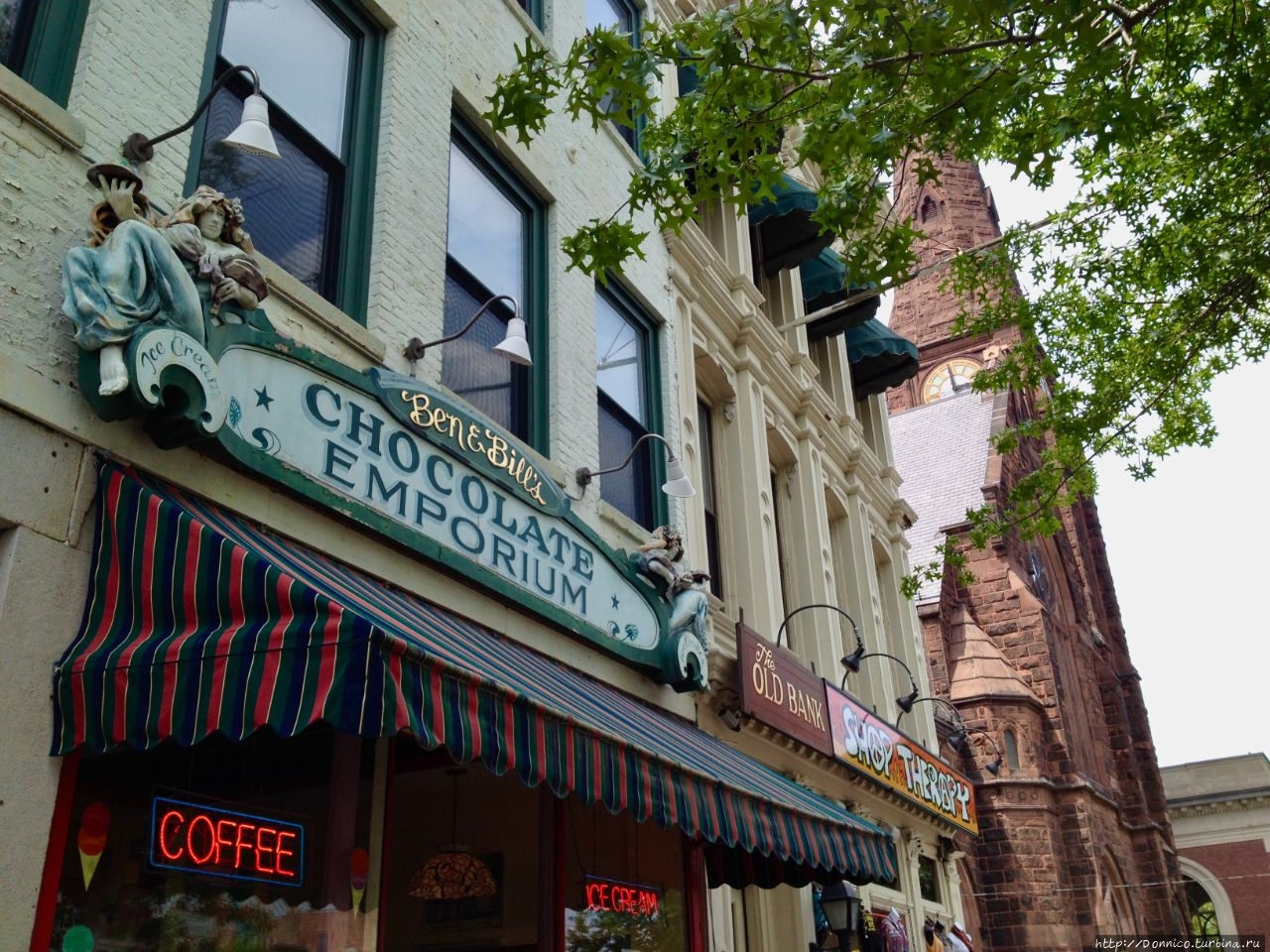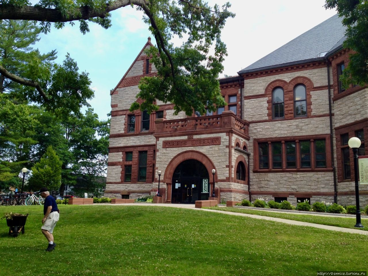 Университеты США: Амхерст колледж в соседнем и более крупном городе Нортхэмптон. Я припарковался в самом центре города, на Main street, и отсюда мы совершим прогулку в этот известный женский (да-да чисто женский) частный гуманитарный колледж, который славится тем, что вся его территория превращена в красивый ботанический сад.