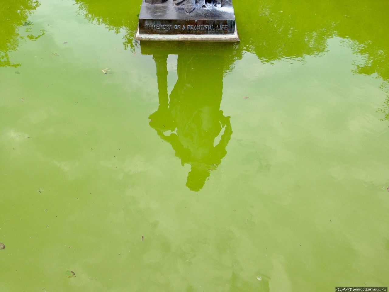 "В память о прекрасной жизни", гласит надпись на этом фонтане, воздвигнутом в 1911 году в память о Мэри Лэннинг, которая будучи на втором курсе в этом колледже, уехав на Рождество к родителям, заболела там тифом и скоропостижно умерла.