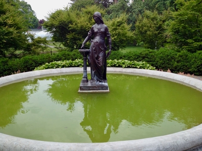 "В память о прекрасной жизни", гласит надпись на этом фонтане, воздвигнутом в 1911 году в память о Мэри Лэннинг, которая будучи на втором курсе в этом колледже, уехав на Рождество к родителям, заболела там тифом и скоропостижно умерла.