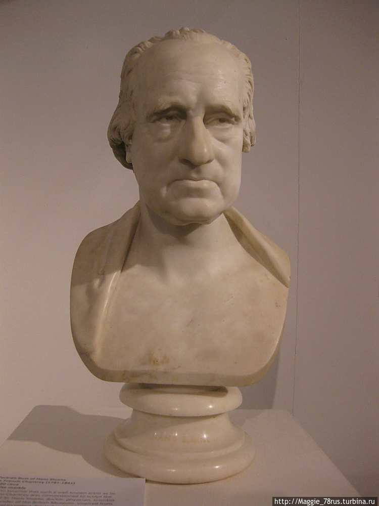Мраморный бюст Ганса Слоуна, известного медика, натуралиста, коллекционера, члена Лондонского королевского общества и его Президента с 1727 по 1741 годы (после Исаака Ньютона). Его коллекция книг, манускриптов, исторических находок стала основой Британского музея.