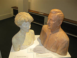 Туфли леди примеряла (новая экспозиция Музея в Нортгемпоне), где выставлены их бюсты. Традиция устанавливать бюсты на родине героя пришла из Рима.