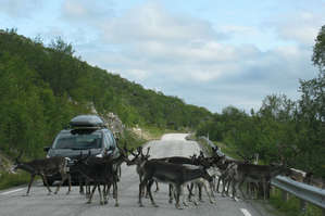 • Дорожная встреча с оленями в северной провинции Норвегии – Финнмарке – обыденное дело.