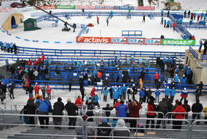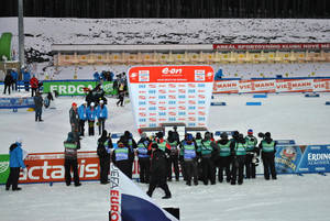 Любые спортивные соревнования по телевизору - это в первую очередь спортсмены и борьба на спортивной площадке, будь то футбол, плавание или биатлон. В реальности же любые крупные состязания - это масштабное действо, значительная часть которого остается за кадром. Ведь есть еще телеоператоры, тренеры, фотографы, болельщики, волонтеры, медики, тех персонал - в общем все то, что остается за рамками телетрансляции. Посмотрим, что не попало в кадр трансляции с кубка мира по биатлону в чешском Нове-Место.