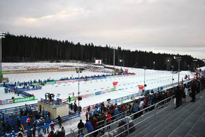 В этом году в Чехии впервые прошел этап Кубка Мира по биатлону. Стадион в местечке Нове-Место-на-Мораве, что примерно в 150 км от Праги, на несколько дней заполнилось болельщиками со всей Европы, журналистами и, конечно, спортсмена в разноцветных комбинезонах. Биатлон вживую оказался сильно непохожим на биатлон по телевизору, но от этого показался только более интересным. Главное, что гонку выиграл представитель России).