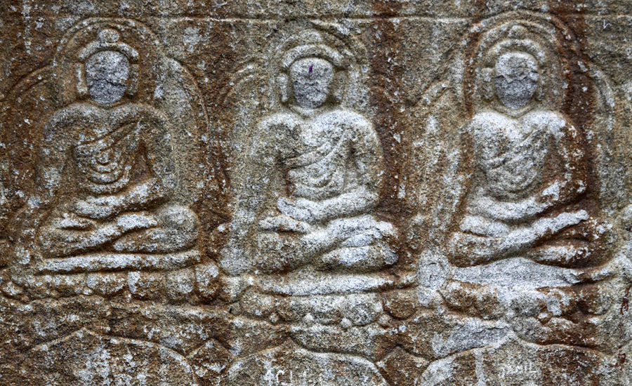 Английская исследовательница Джейн Дункан, побывавшая в Скарду в начале XX века, сумела получить объяснение этому изображению у буддистских монахов в (ныне индийском) Кашмире. Маленькие Будды – это Будды прошлых эпох, центральная фигура – Будда Шакьямуни, то есть нынешний Будда, стоящие по бокам Бодхисаттвы – это Будды Майтрейя, то есть Будды грядущего.