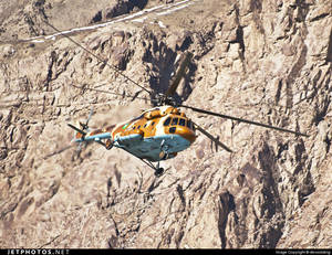 Это вертолет Ми-17 нашего производства. Десантно-транспортная модификация оборудуется разнообразным оружием, с вертолета можно осуществлять прицельное бомбометание и т.д. Конечно, здесь он используется, полагаю, в первую очередь для эвакуации пострадавших альпинистов, наблюдения и т.д.
