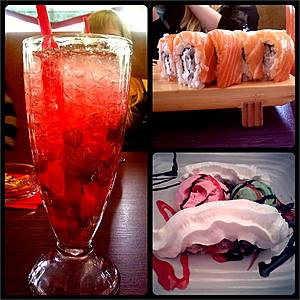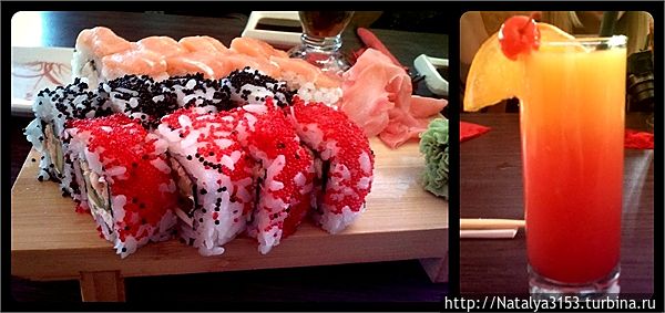 Очень понравилась система обслуживания, которую у нас ввели не так давно — кнопки для вызова официанта. То есть не нужно орать через весь зал, чтобы к тебе подошел официант. Роллы были очень вкусные, хотя порции были немного меньше, чем в других подобных заведениях. Впечатлил десерт "Виноградная темпура". Состоит он из двух шариков мороженного(клубничного и фисташкового), запеченного винограда под взбитыми сливками и полит клубничным и шоколадным топпингом.