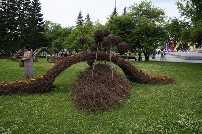 И в этом году ко дню города, который празднуется в последнее воскресенье июня, Новосибирск не остался без подарка. Новая выставка «Лэнд-Арт Сибири (2018)» даже несколько масштабнее прежней. Такое пройти мимо никак нельзя. Возле каждой композиции выстраиваются очереди, чтобы сфотографироваться. Красота, созданная из прутьев и веток на каркасах основы, с выдумкой и фантазией воплощенная в образы, не может не радовать. И без внимания уж точно не останется.