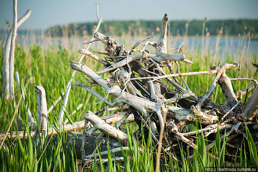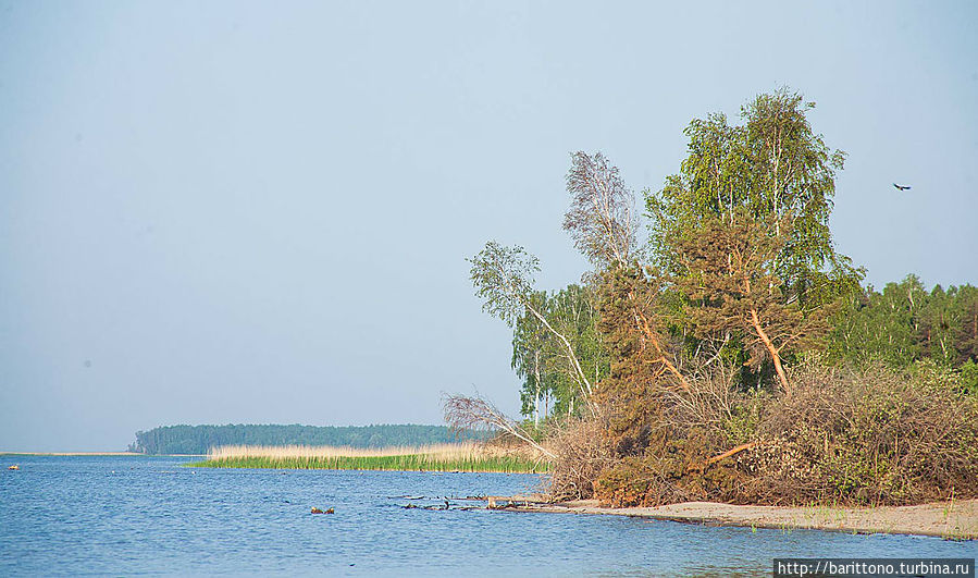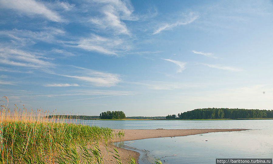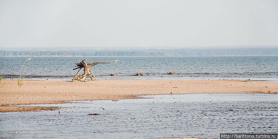 Следующий день начался со штиля. Водная гладь только слегка покачивалась, отражая синее безоблачное небо. Байдарочник, разумеется, вновь уплыл далеко вперед, а я опять прошелся по мелководью длинного острова сократив пару километров пути. На острове множество туристических баз, пока еще пустующих, но готовящихся к прибытию своих посетителей. Слышались стуки молотков и жужжание пил, однако людей с берега видно не было.
