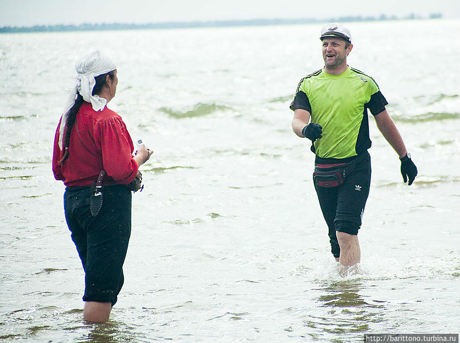 На половине пути обнаружил большую отмель. Прогулялся пешком. Должен сказать необычные ощущения, гулять по пояс там, где до ближайшего берега несколько километров.