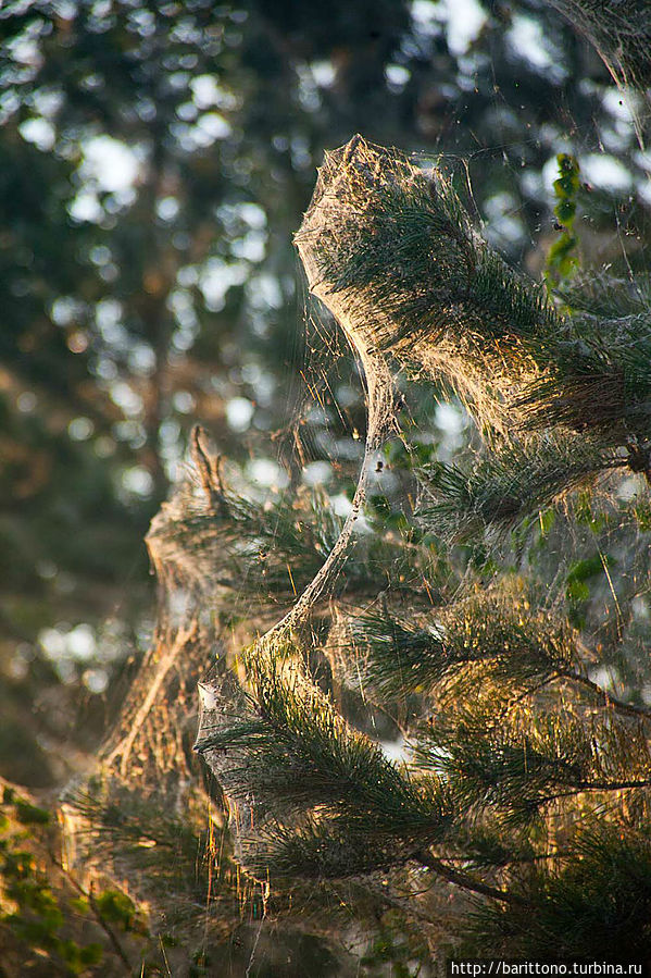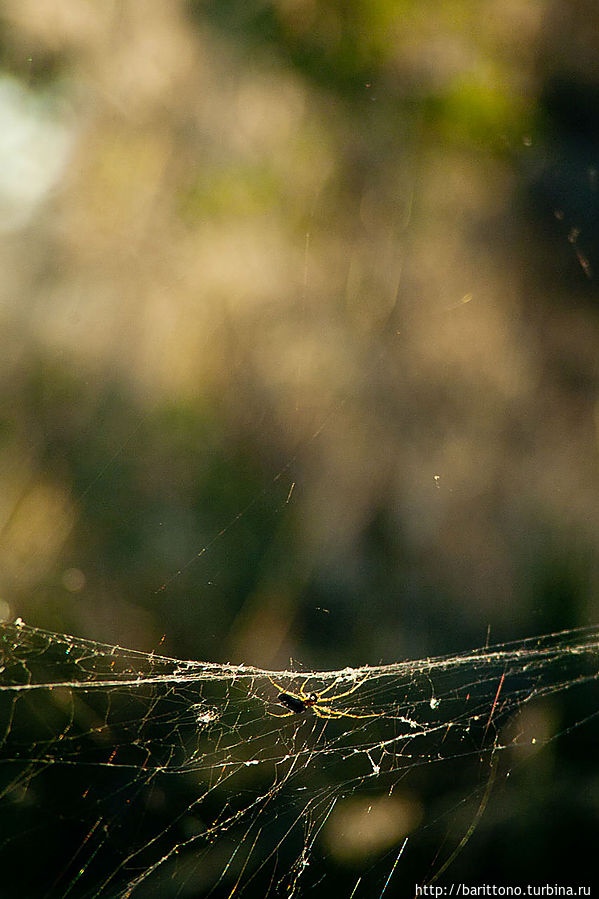На маленьком островке который мы выбрали для ночевки, живет огромная колония пауков. Никогда прежде я не встречал такого скопления этих насекомых. Небольшая рощица из нескольких деревьев заполнена ими, что называется под завязку и опутанные плотной паутиной деревья, желтеют и чахнут под таким натиском. Утром, в наших лодках вытащенных на песок, мы обнаружили по несколько сплетенных паутин с восседавшими поблизости хозяевами.
