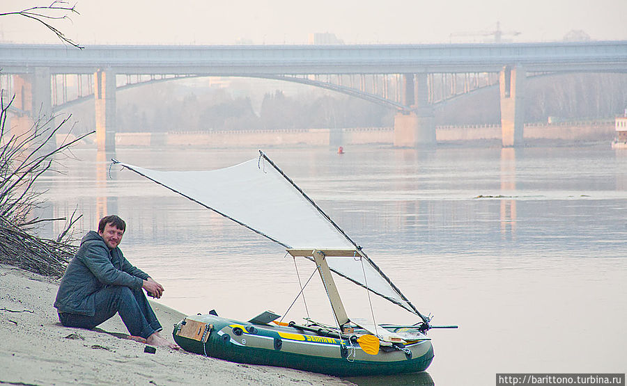Туристы встретившие нас на острове прибыли сюда на шестиметровом надувном парусном катамаране, и капитан Катя любезно предложила доставить нас на нем в Новосибирск.