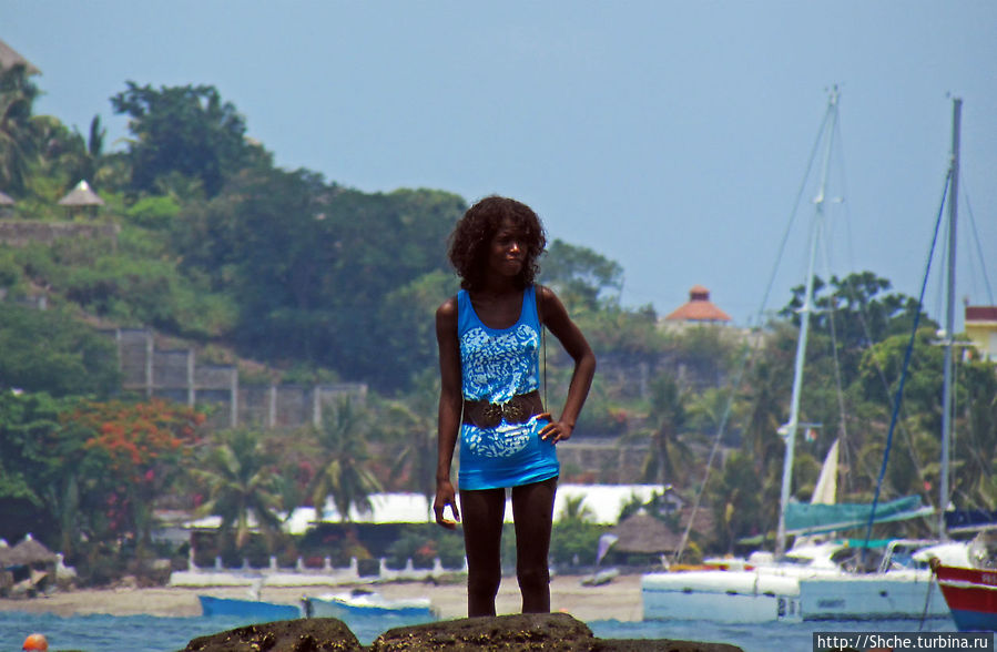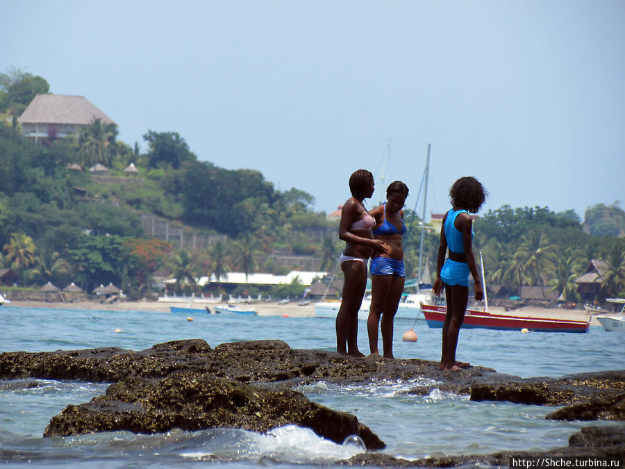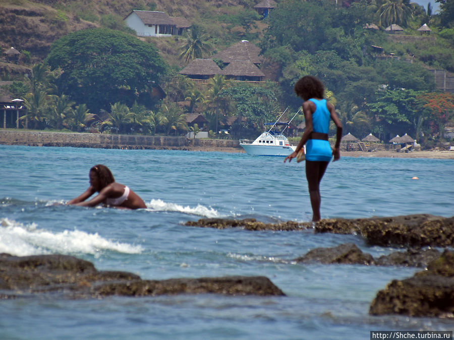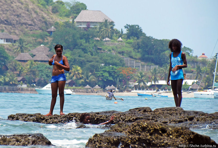 Пока подруги меньжевались на камне, первая девочка подплыла назад