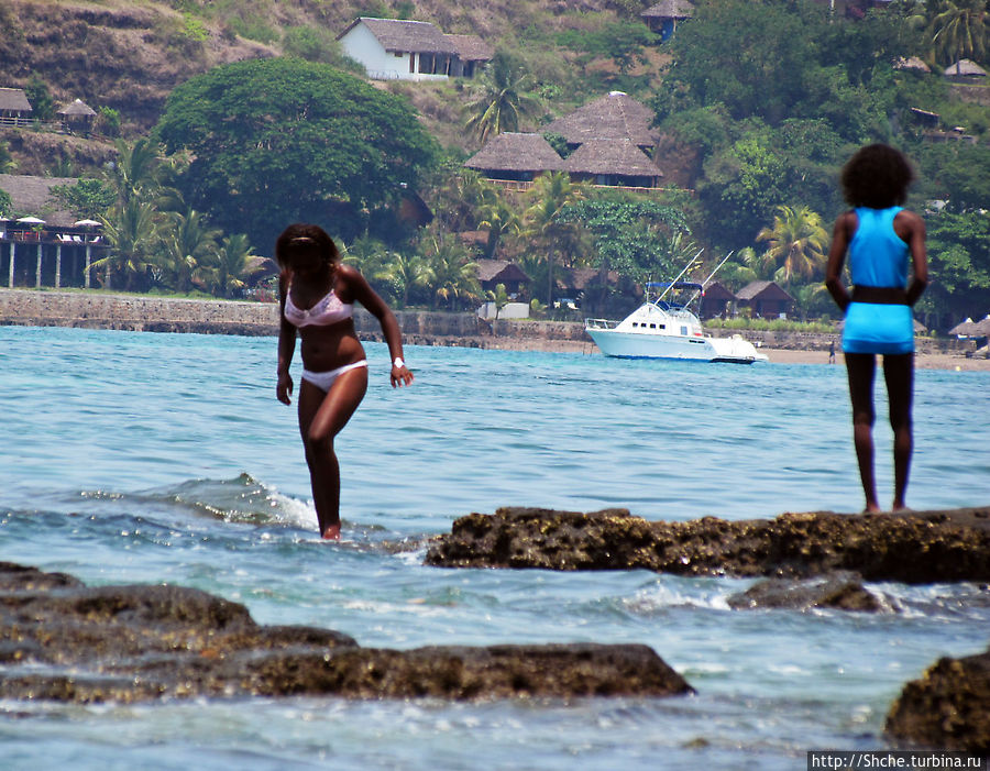 Проотдыхав на пляже острова Нуси Бе подряд почти три дня, организм потребовал какого-нибудь движения. Вдоль пляжа уже погуляли, захотелось заглянуть, а что там за скалой, которой заканчивался наш пляж слева.