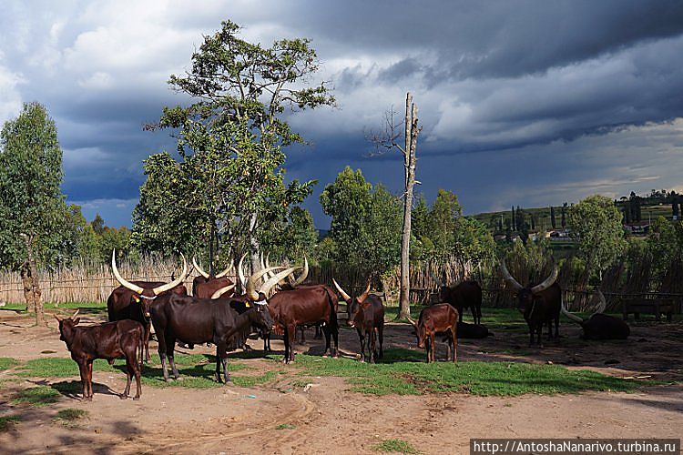 В самом городе мы других коров тоже видели, но они все были обыкновенные, как наши. А это стадо специально держат как культурную ценность. На мясо, сказали, не режут их. И, кстати, у президента Руанды Поля Кагаме есть личное стадо коров иньямбо. И это, я думаю, намного правильней, чем стадо элитных автомобилей или аэропланов, ибо, говорят, что в целом живет он достаточно скромно, и я охотно в это верю.