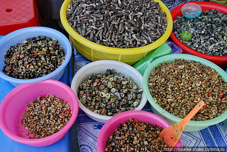 Кстати, в отличии от многих и многих рынков, посещенных мною в других странах ЮВА, на этом совсем нет неприятного запаха! Видно, что все не просто свежее, а свежайшее! И мух нет!