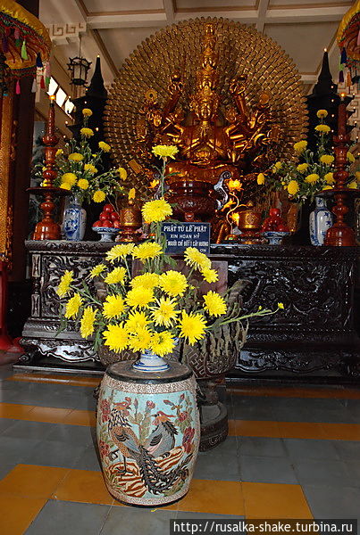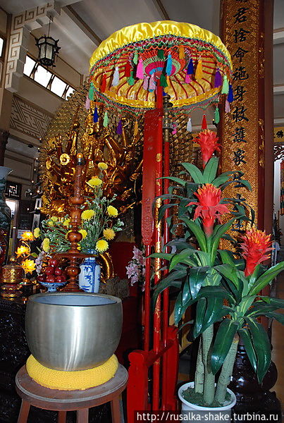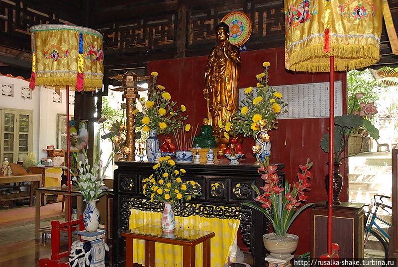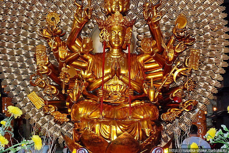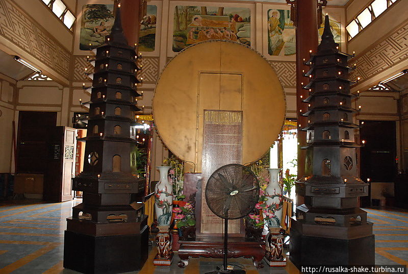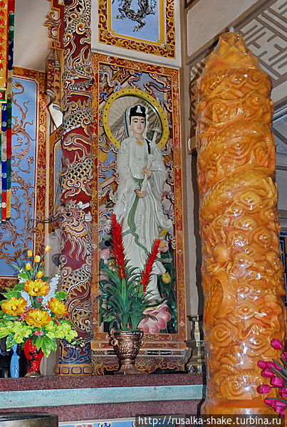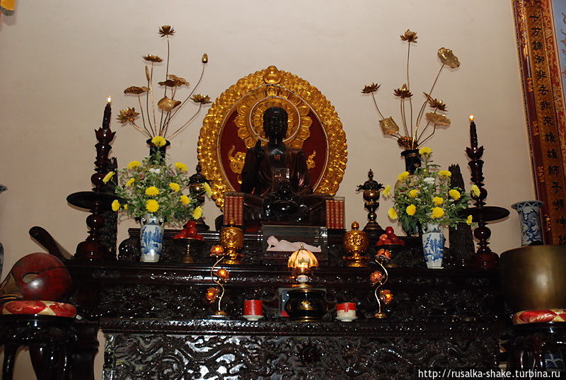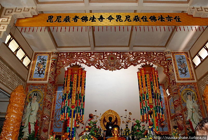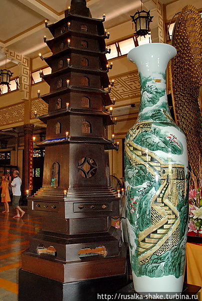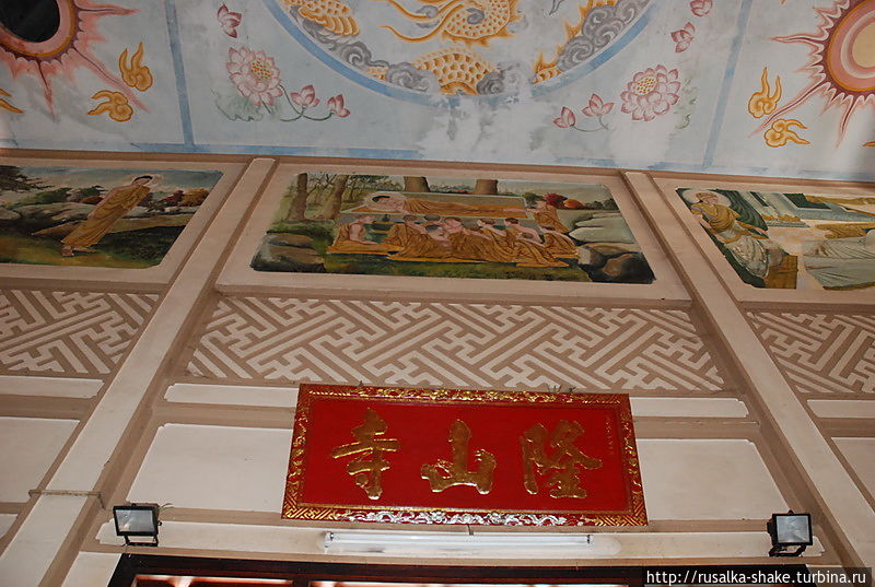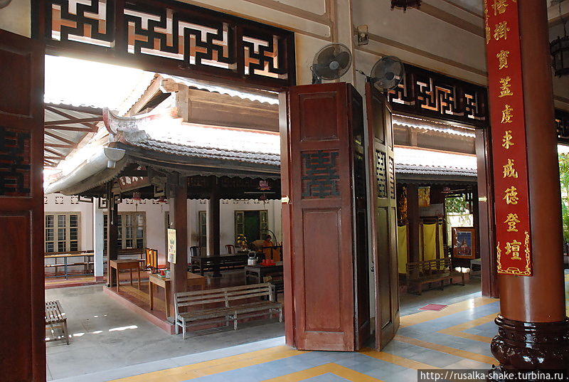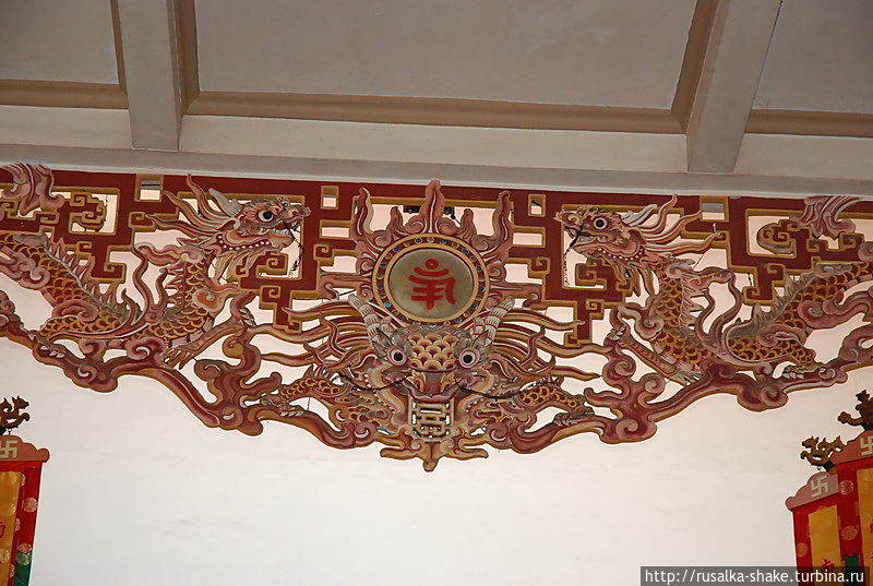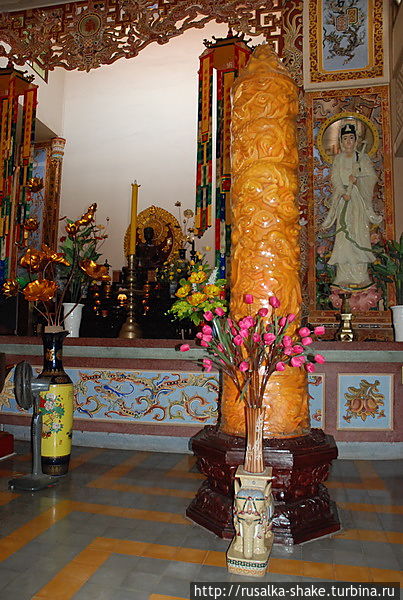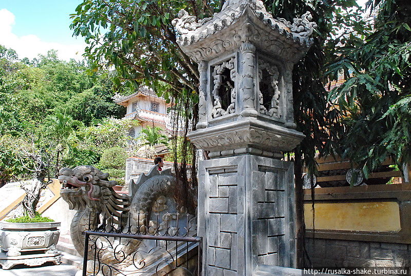 Пагода,в которой живут монахи, была построена в конце 19 века и реконструировалась много раз за прошедшие годы. Крыша, выполненная в фоне дуги и вход оформлены мозаичными драконами, выполненными из стекла и частями керамической плитки.
